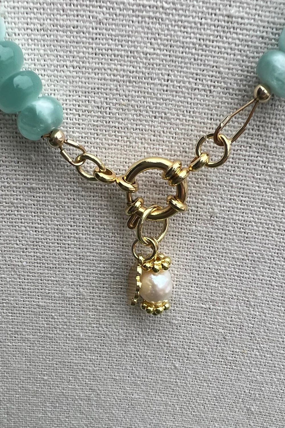 Green Jade, Strawberry Quartz, and Freshwater Pearl Necklace
