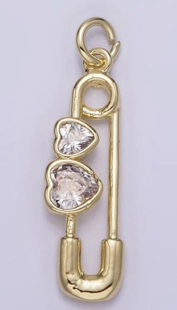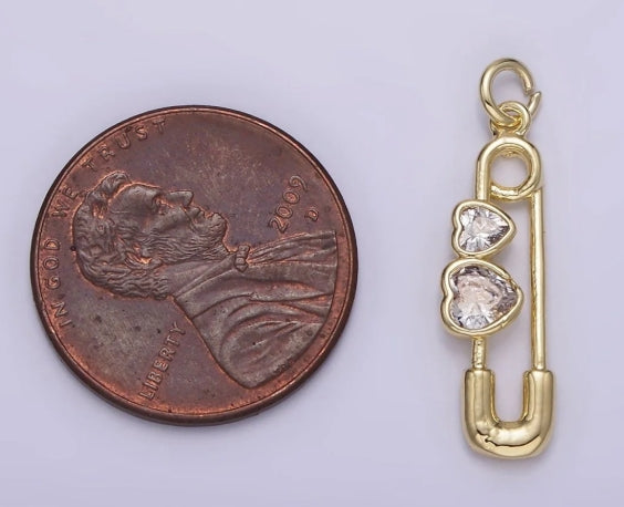 Gold Filled Double Clear CZ Heart Safety Baby Pin Charm