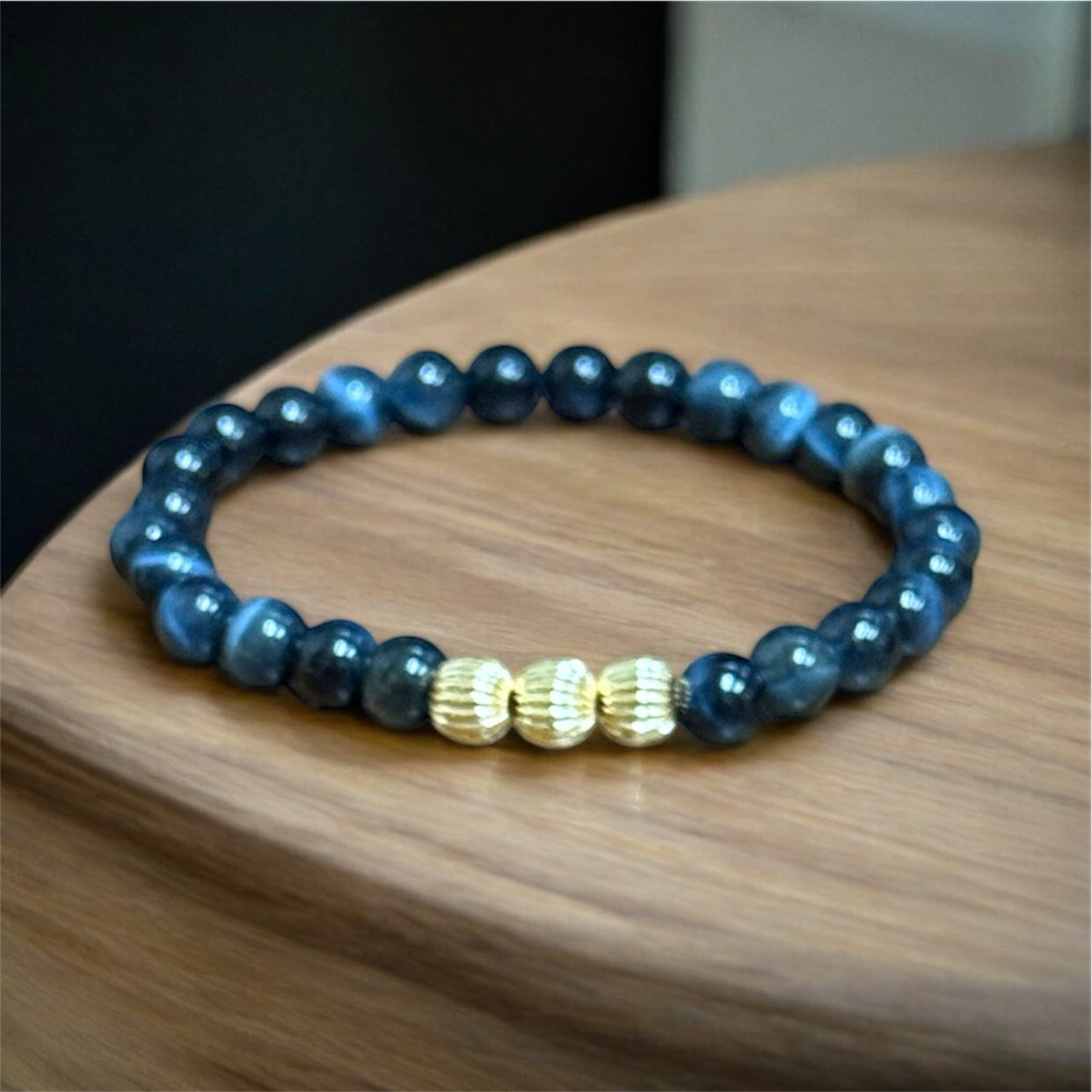 Blue Tiger’s Eye and Gold-Fill Beaded Bracelet