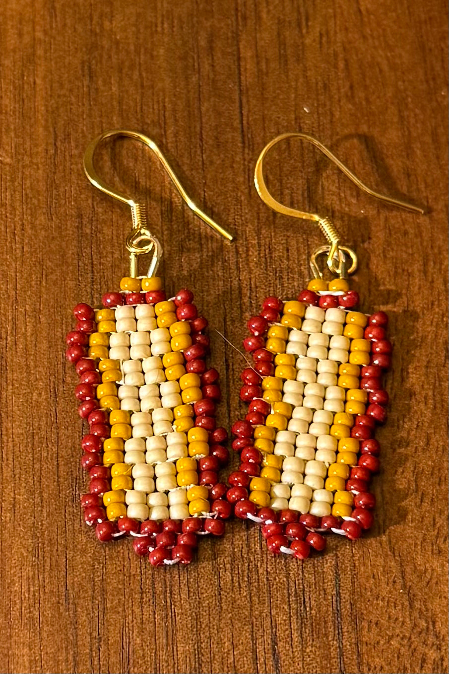 'Geometry' Teardrop Beaded Earrings (Pumpkin and Raspberry)