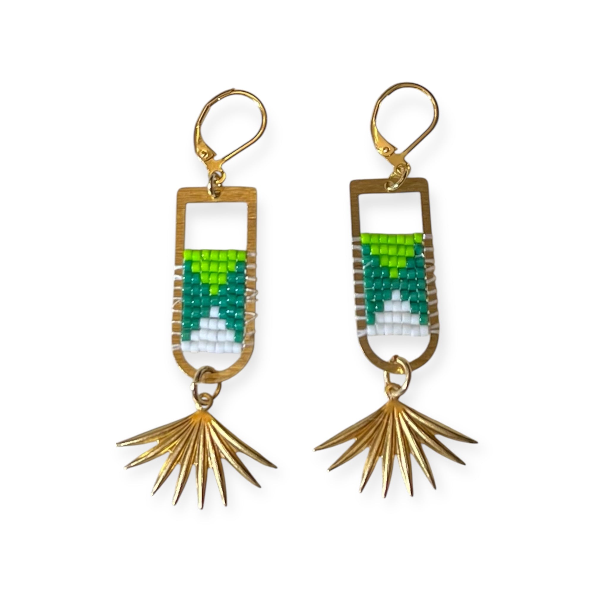 Green and White Dangle Earrings