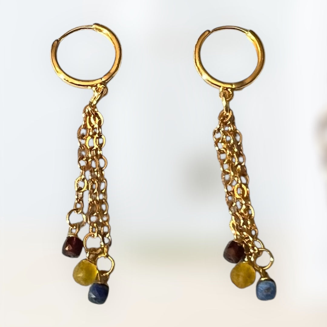 Triple Gemstone Earrings