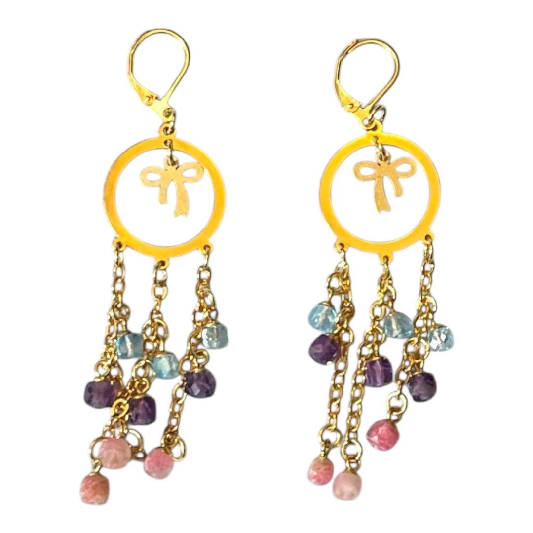 Gemstone Cluster Bow Earrings