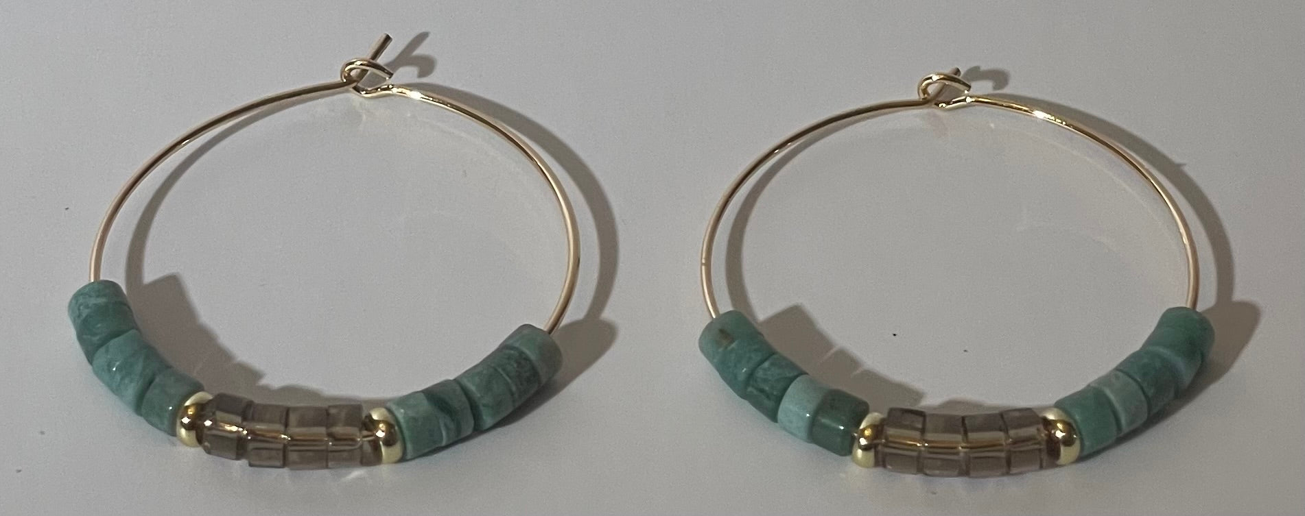 Sunstone, Larimar Quartz and Green Jade Hoops