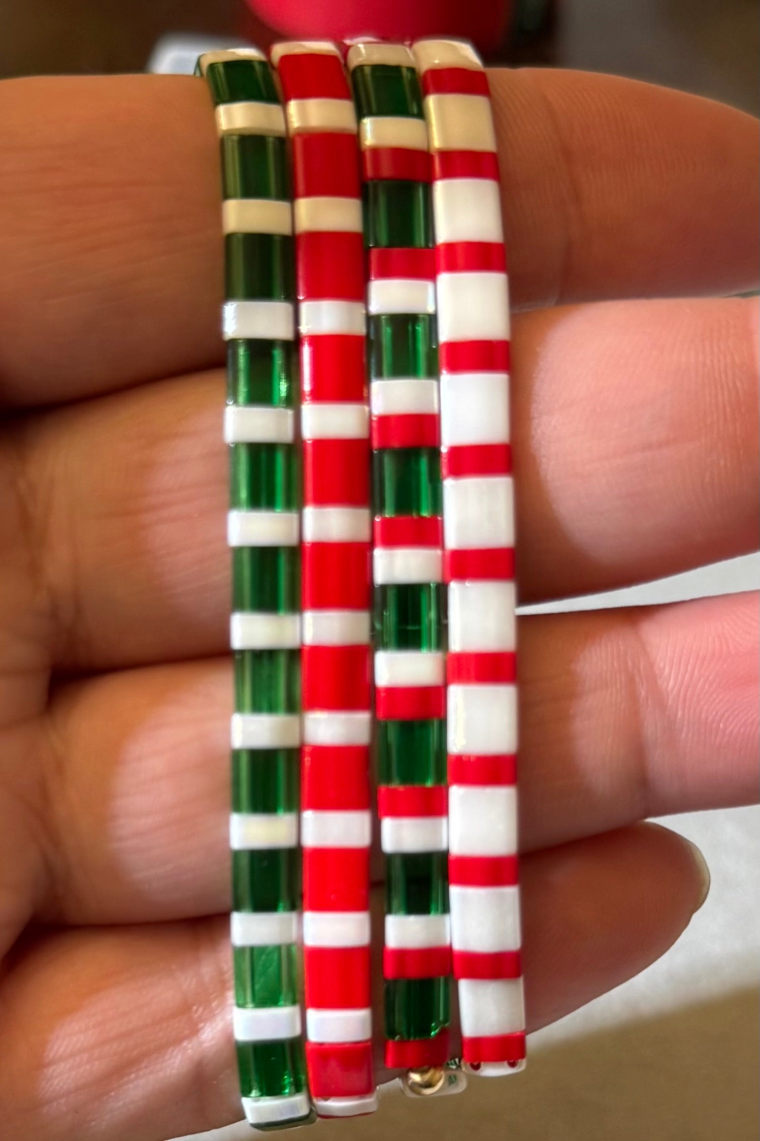 ‘Holly Jolly’ Red and White Recycled Glass Necklace