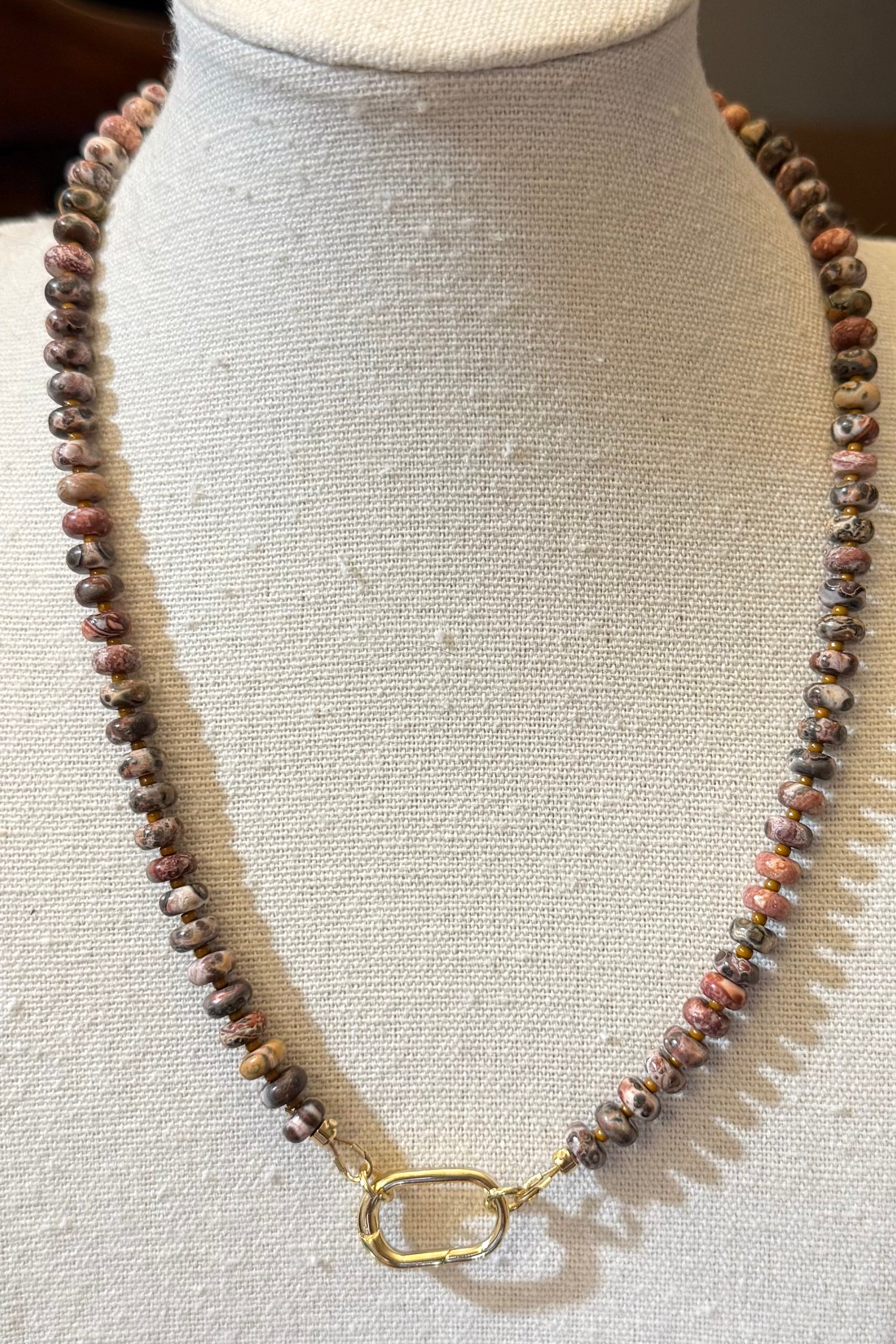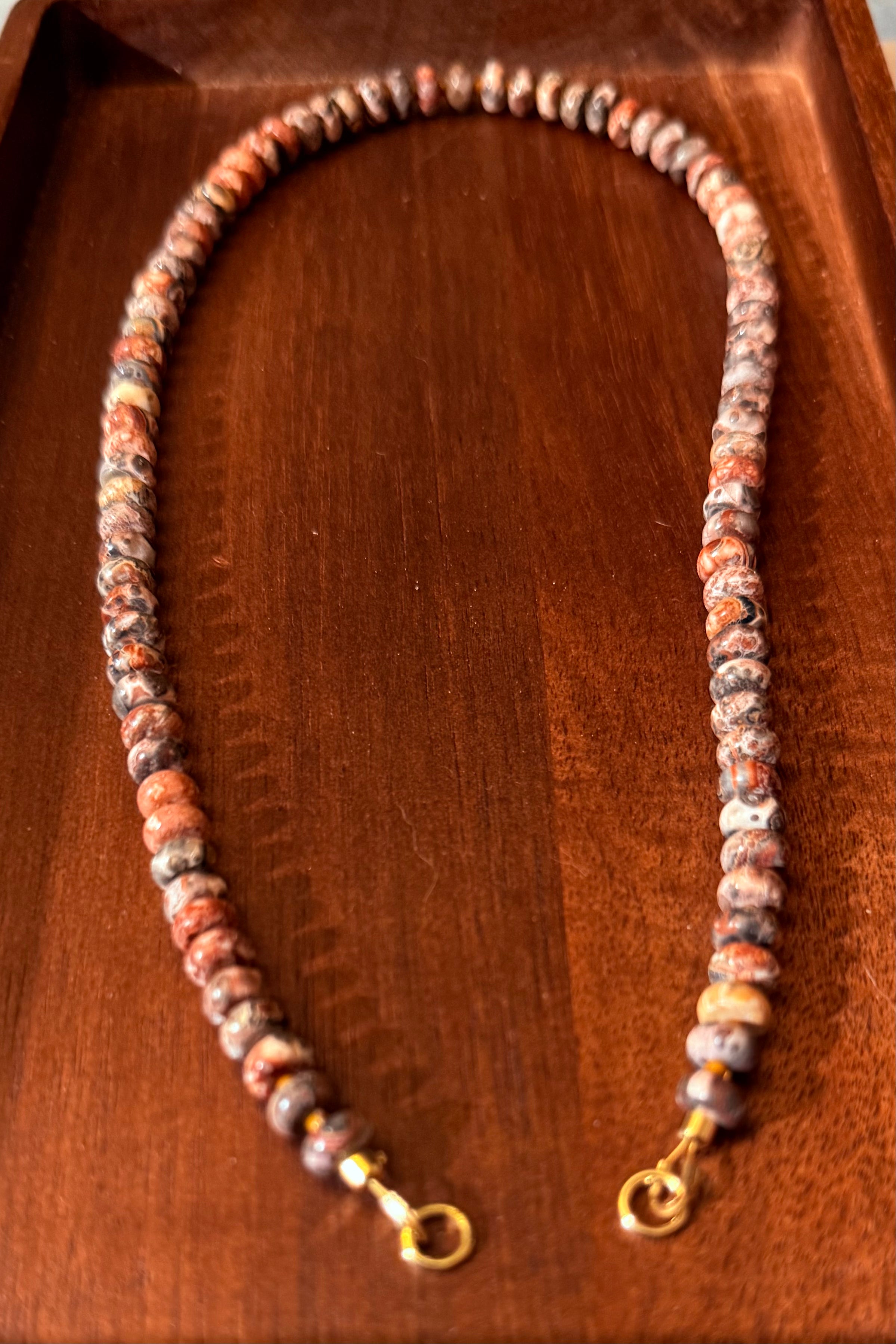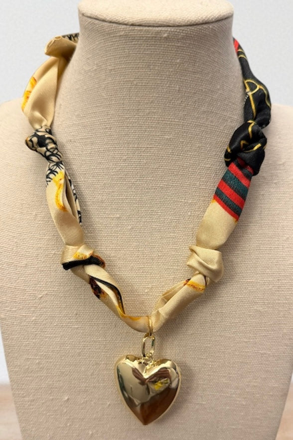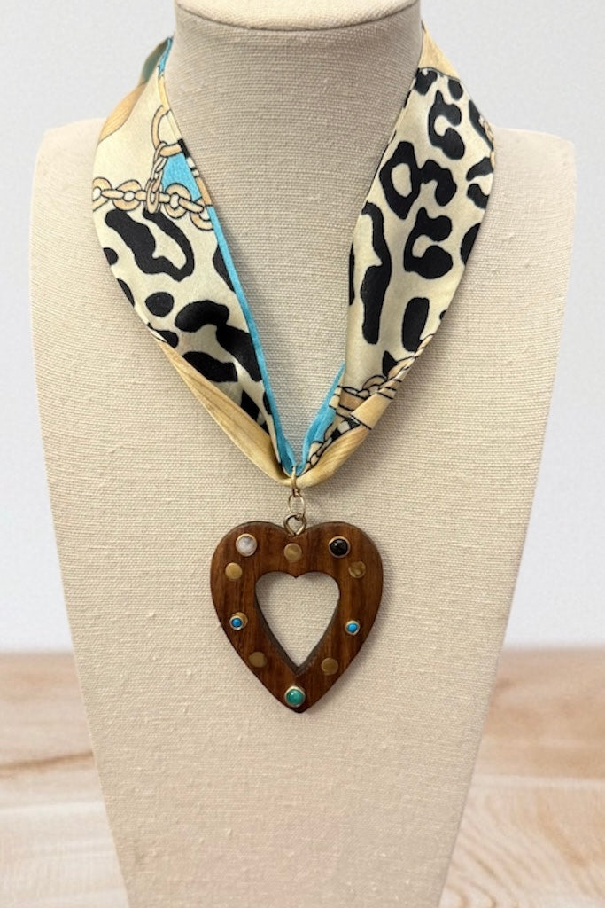 Bandana Necklace with Wood and Gemstone Heart Pendant