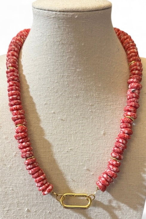 ‘Holly Jolly’ Red and White Recycled Glass Necklace