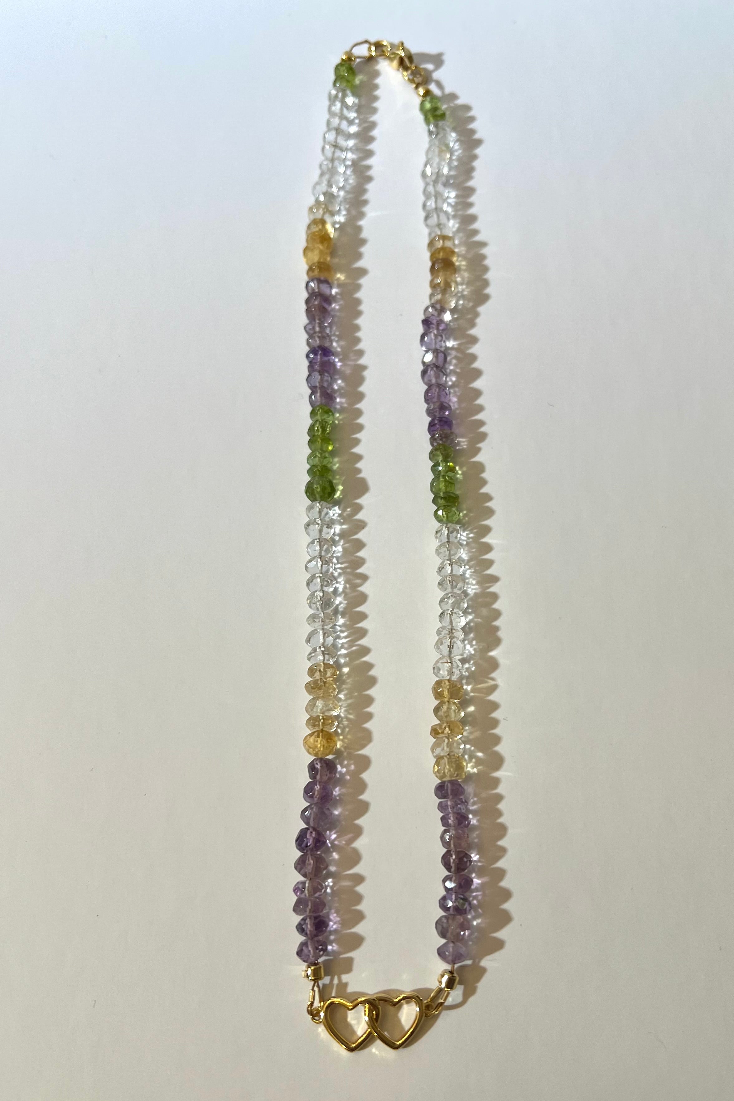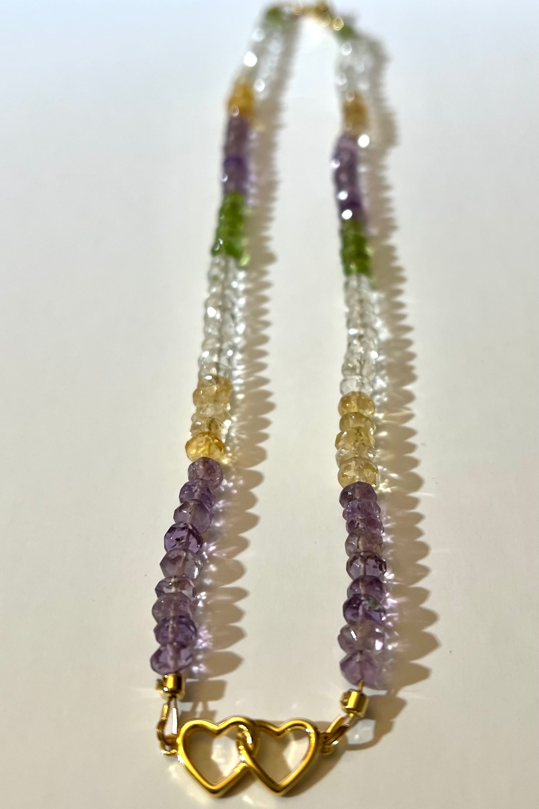 Amethyst, Citrine, Peridot and Rock Crystal Joined Hearts Necklace