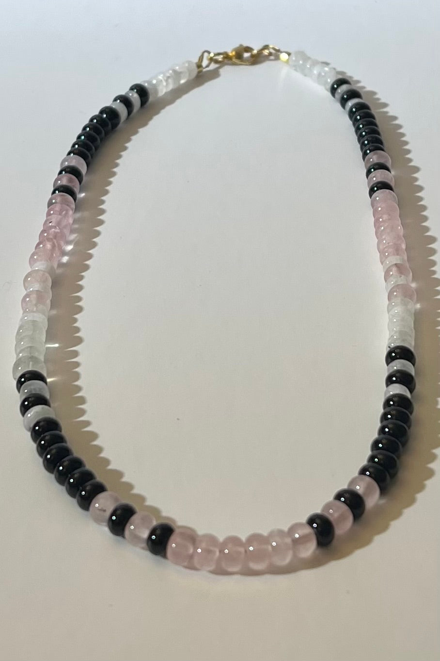 Onyx, Rose Quartz, and Moonstone Necklace