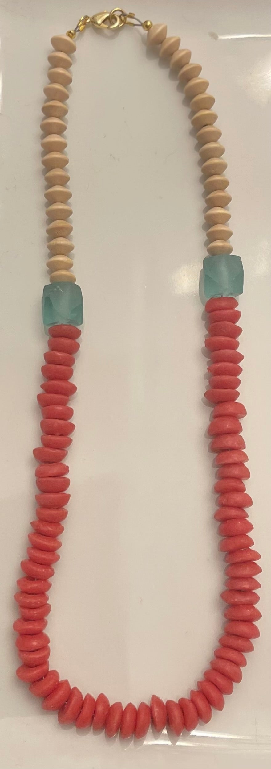 ‘Global’ Javanese Glass and Waxed Wood Bead Necklace