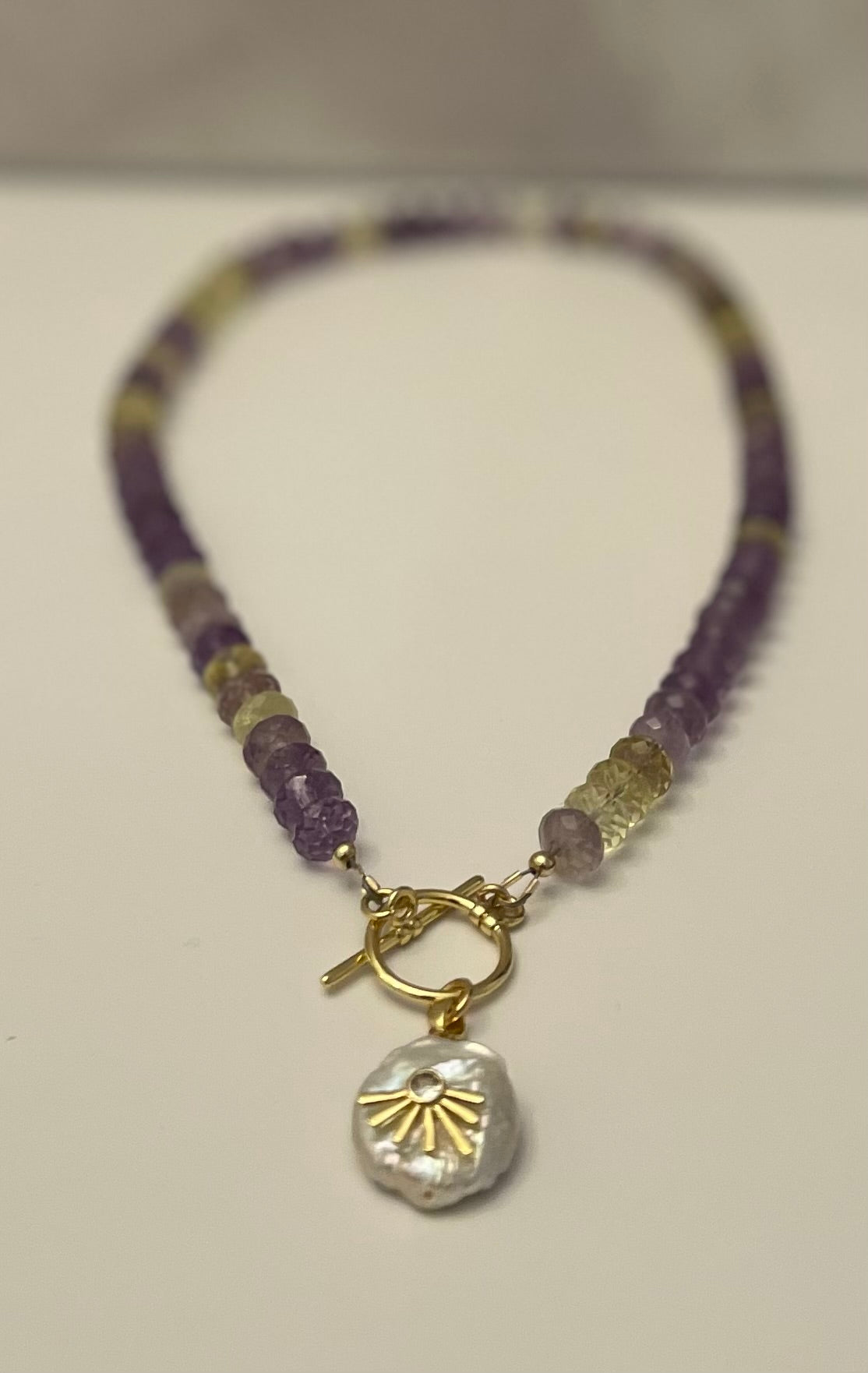 ‘Sunset Bliss’ Gemstone and Pearl Necklace