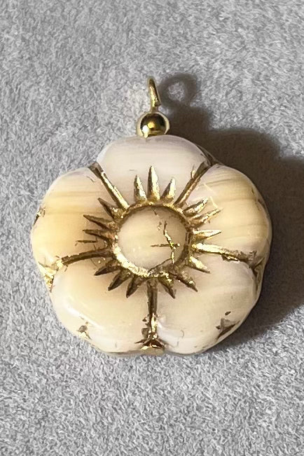 Wild Rose Cream and Gold Glass Charm