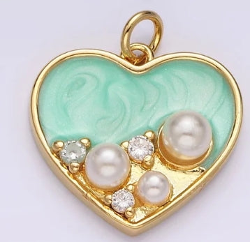 Gold-Filled and Enamel Heart with Pearls Pendant