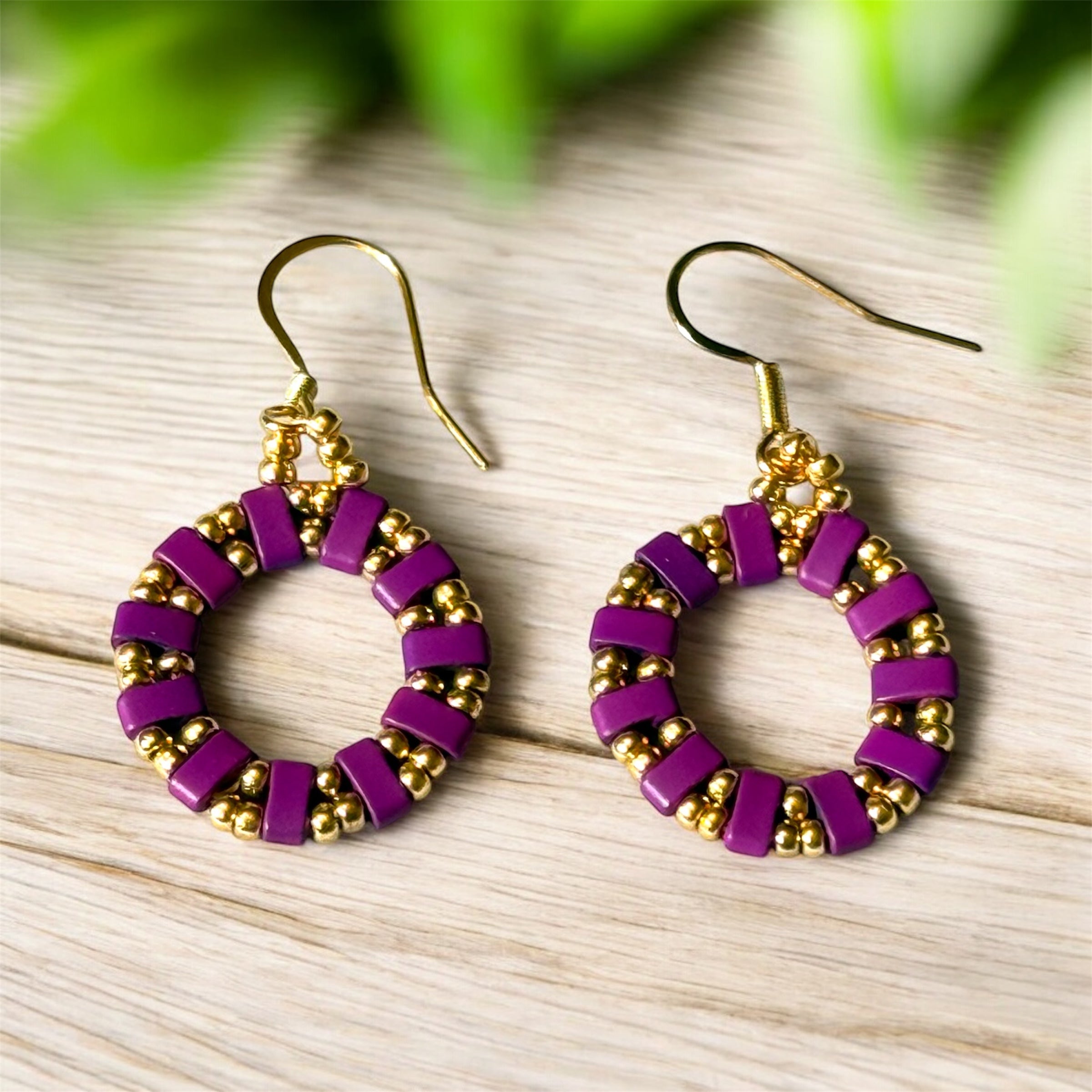 Beaded Circle Earrings in Violet
