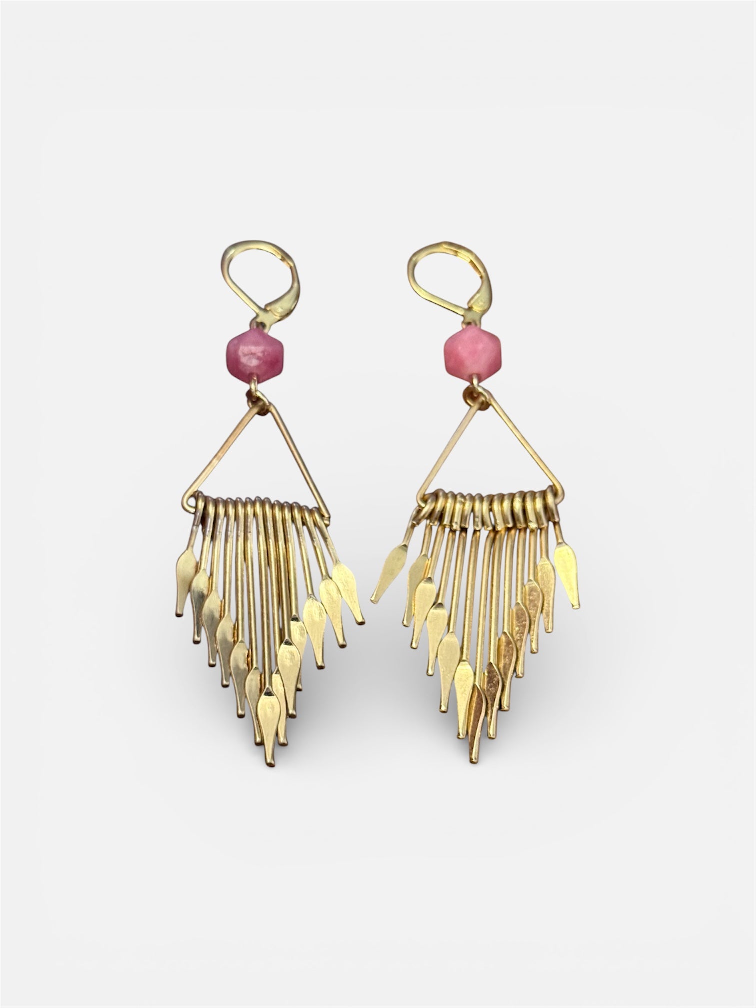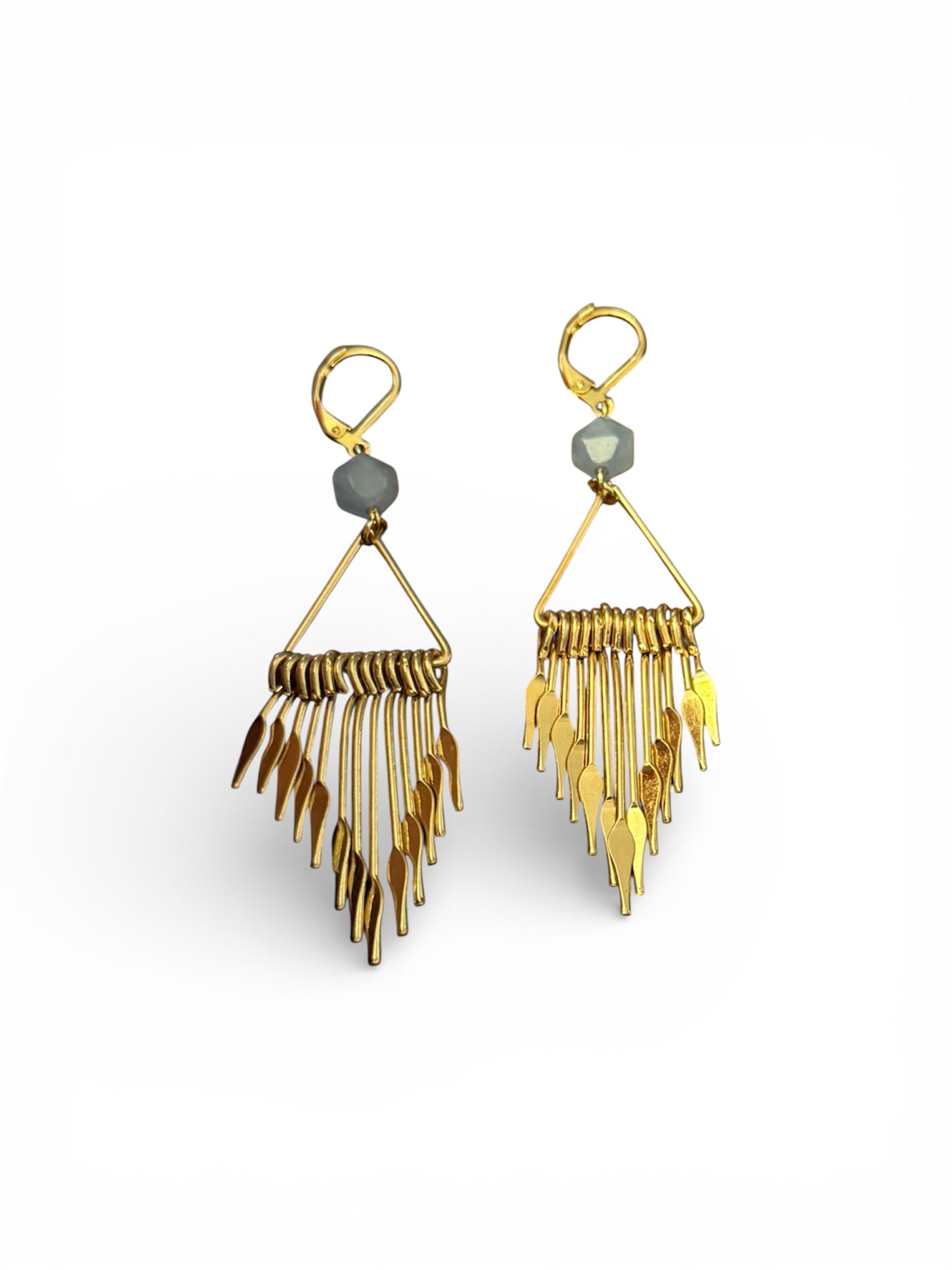 Brass Paddle and Gemstone Dangle Earrings
