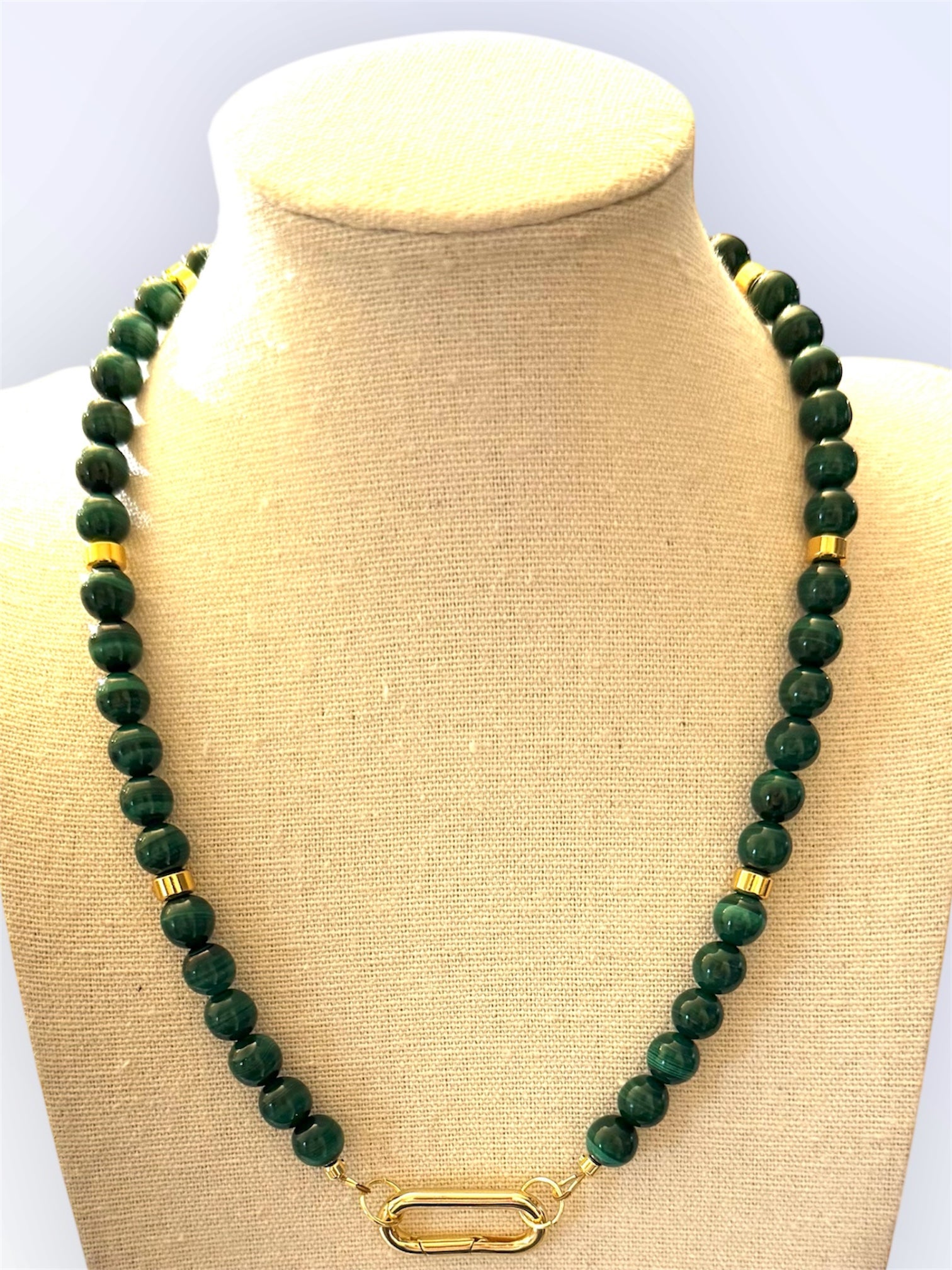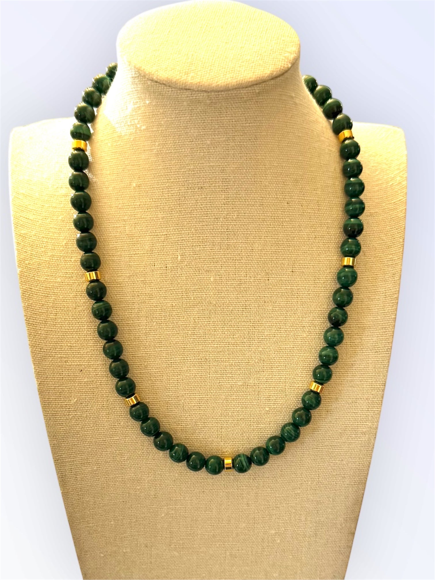 ‘Green Goddess’ Malachite and Gold Beaded Necklace