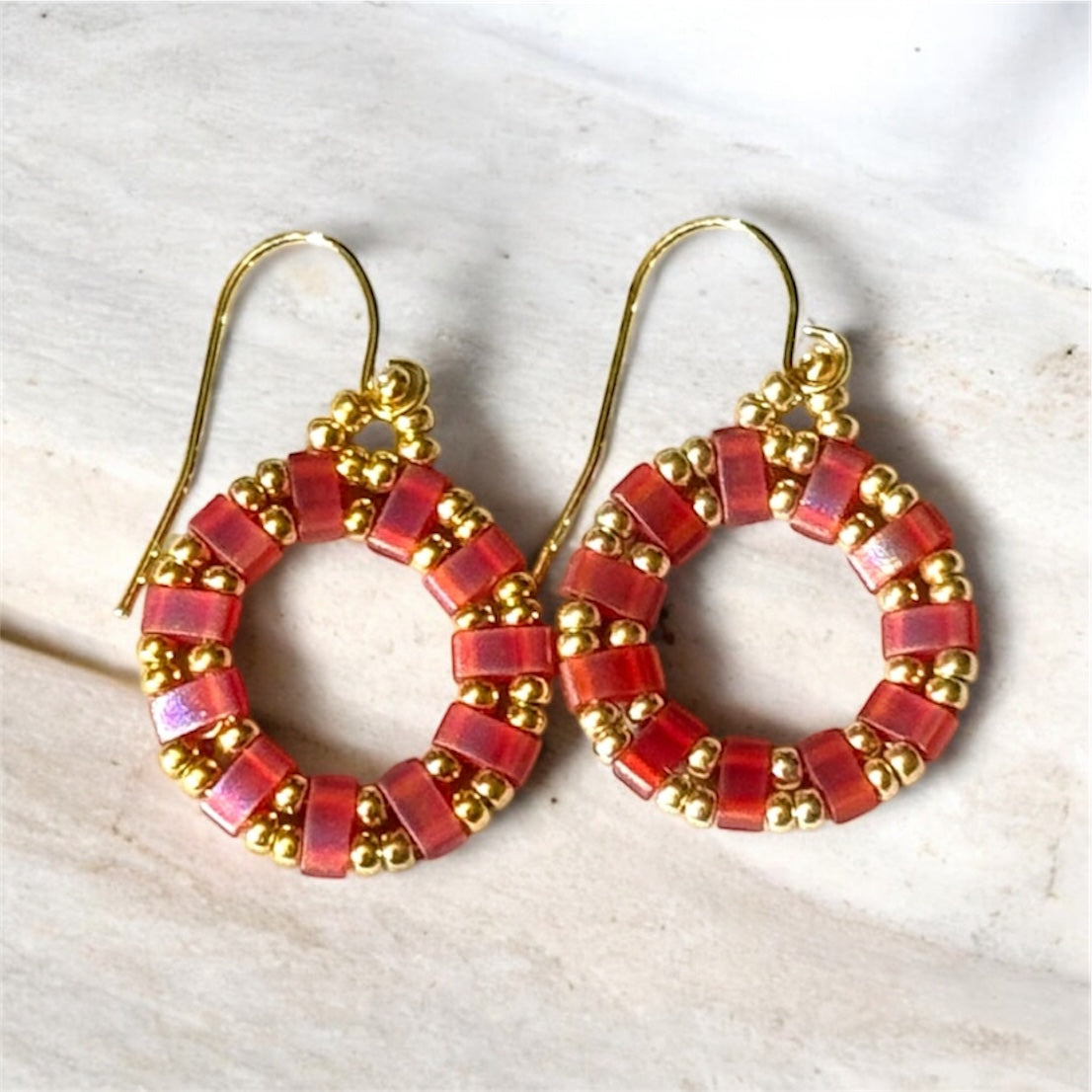 Beaded Circle Earrings in Red