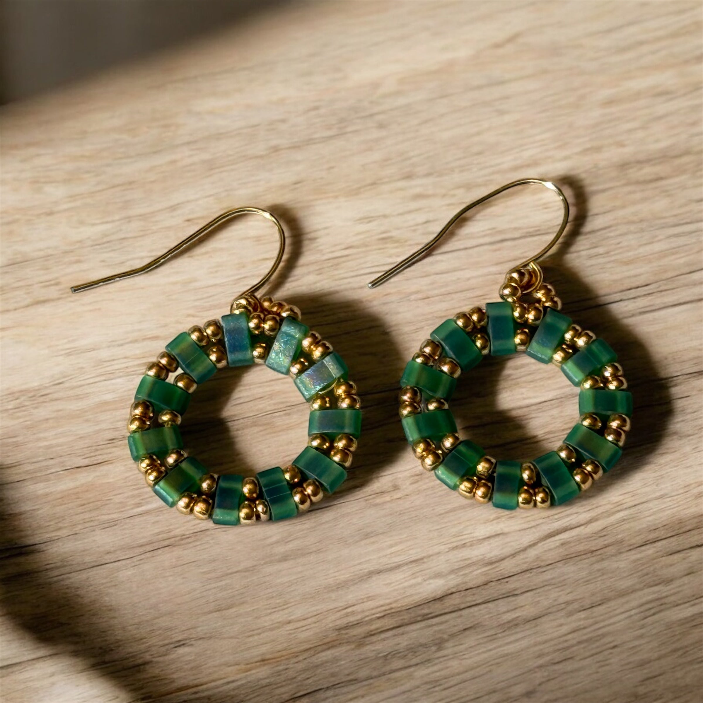 Beaded Circle Earrings in Green